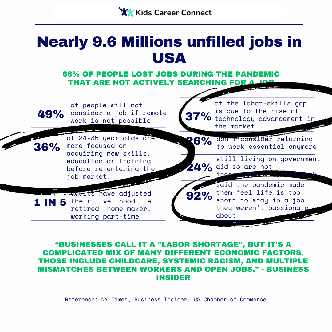 Covid had a huge impact on the job market, there continues to be a massive surplus of unfilled jobs. Many socio-economic factors impact the labor skills gap.